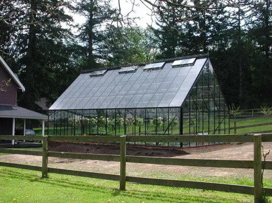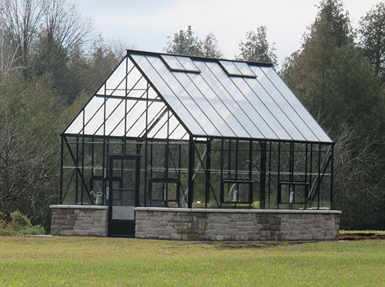 The unique style of a straight Cape Cod backyard greenhouse adds character to any landscape setting.